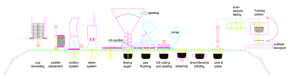 Primary packaging steps and layout of a new baby nutritional powder product filling and packaging process